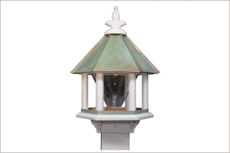 The BF6C and BF6V both have a removable roof for easy cleaning, a removable finial for easy filling and a hopper that holds 5 to 7 lbs of seed.