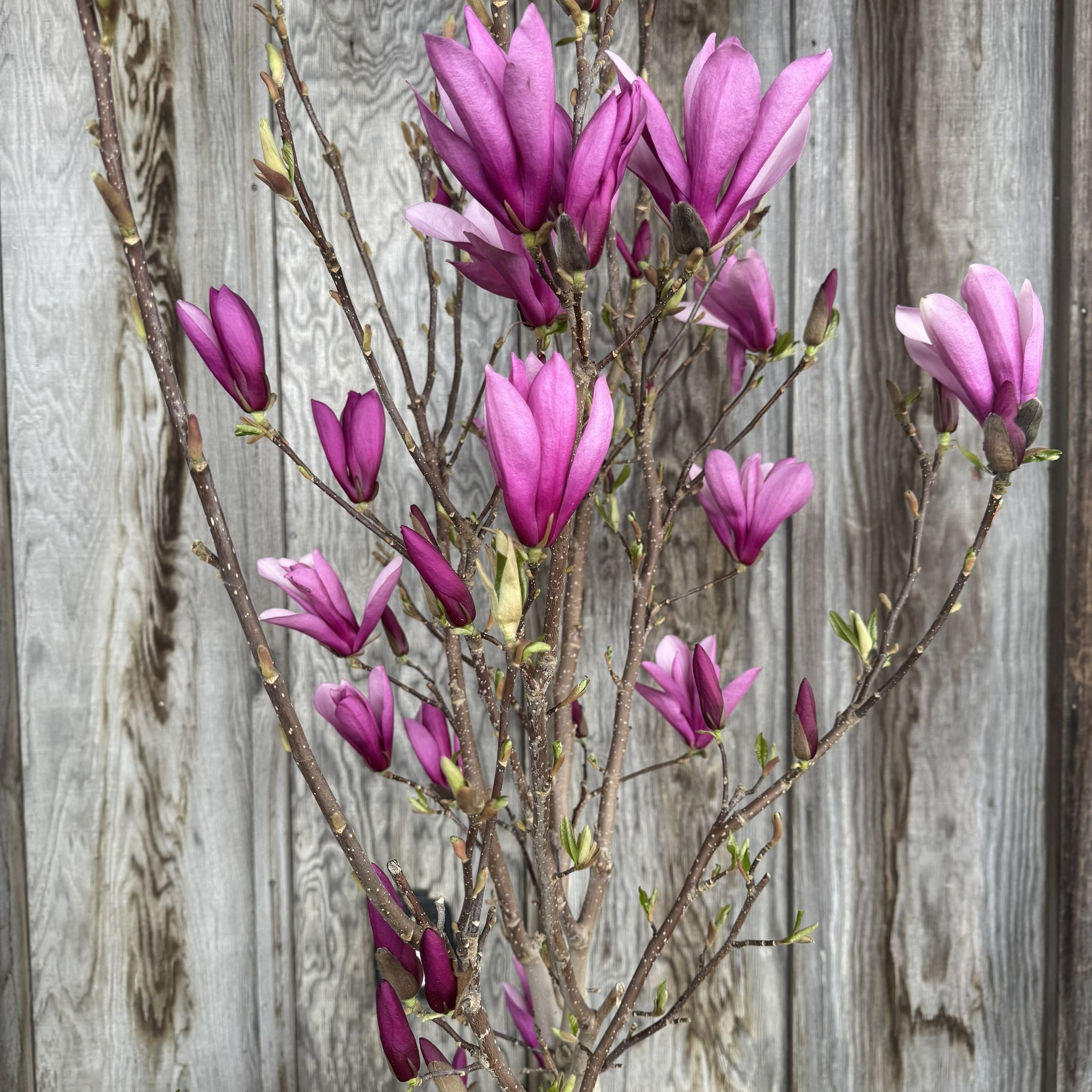 Part of the Little Girl series of saucer Magnolias, Ann is very similar to Jane but features brighter purple-red blooms and a much smaller size. Blooming later than other varieties of Magnolias, the Little Girl series is less likely to be damages by late frosts. Ann is a multi-trunked variety of deciduous magnolias, giving it a shrub-like appearance. Cut and enjoy the flowers inside.